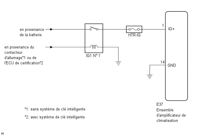 DESCRIPTION Le circuit d'alimentation électrique de secours pour l'ensemble d'amplificateur de climatisation est indiqué dans le schéma ci-dessous. L'alimentation électrique est assurée mê ...