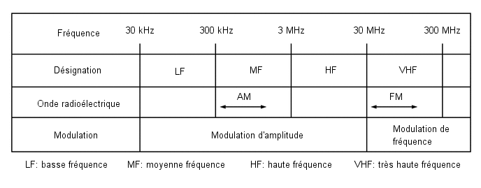 (1) Les émissions de radio utilisent les bandes de fréquence indiquées dans le tableau ci-dessous.