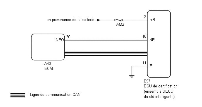 | (b) Rebrancher le connecteur E57 de l'ECU de certification (ensemble d'ECU de clé intelligente). |