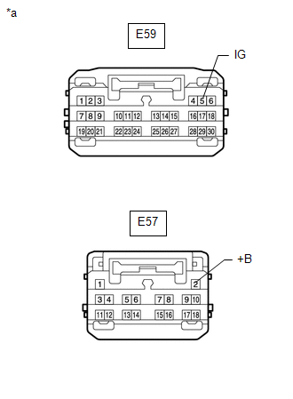 | (a) Débrancher le connecteur E57 de l'ECU de certification (ensemble d'ECU de clé intelligente). |