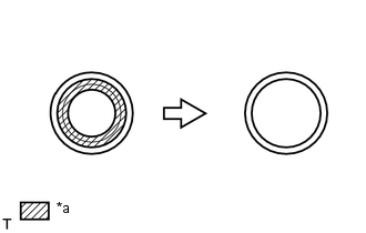| (a) Appliquer de la pâte étanchéifiante de façon continue comme indiqué sur le schéma. Pâte étanchéifiante: Pâte étanchéifiante noire, Three bond 1207B d'origine Toyota ou produit équivalent Diamètre de joint standard: