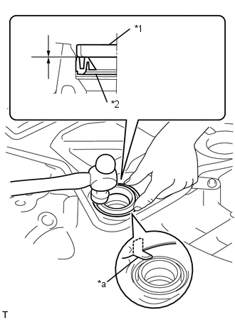 (a) A l'aide d'un maillet en plastique, introduire 2 goupilles annulaires de carter de renforcement neuves jusqu'à leur butée.