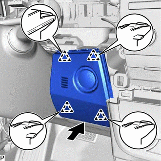 | (c) Engager les 3 guides et les 2 agrafes pour reposer le panneau de finition central inférieur de tableau de bord comme indiqué sur le schéma. |