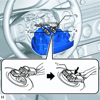 | (c) Brancher les 2 connecteurs d'airbag sur l'ensemble de bouton d'avertisseur sonore. REMARQUE: