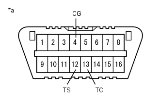(a) A l'aide du SST, brancher les bornes 12 (TS) et 4 (CG) du DLC3 ainsi que les bornes 13 (TC) et 4 (CG) du DLC3.